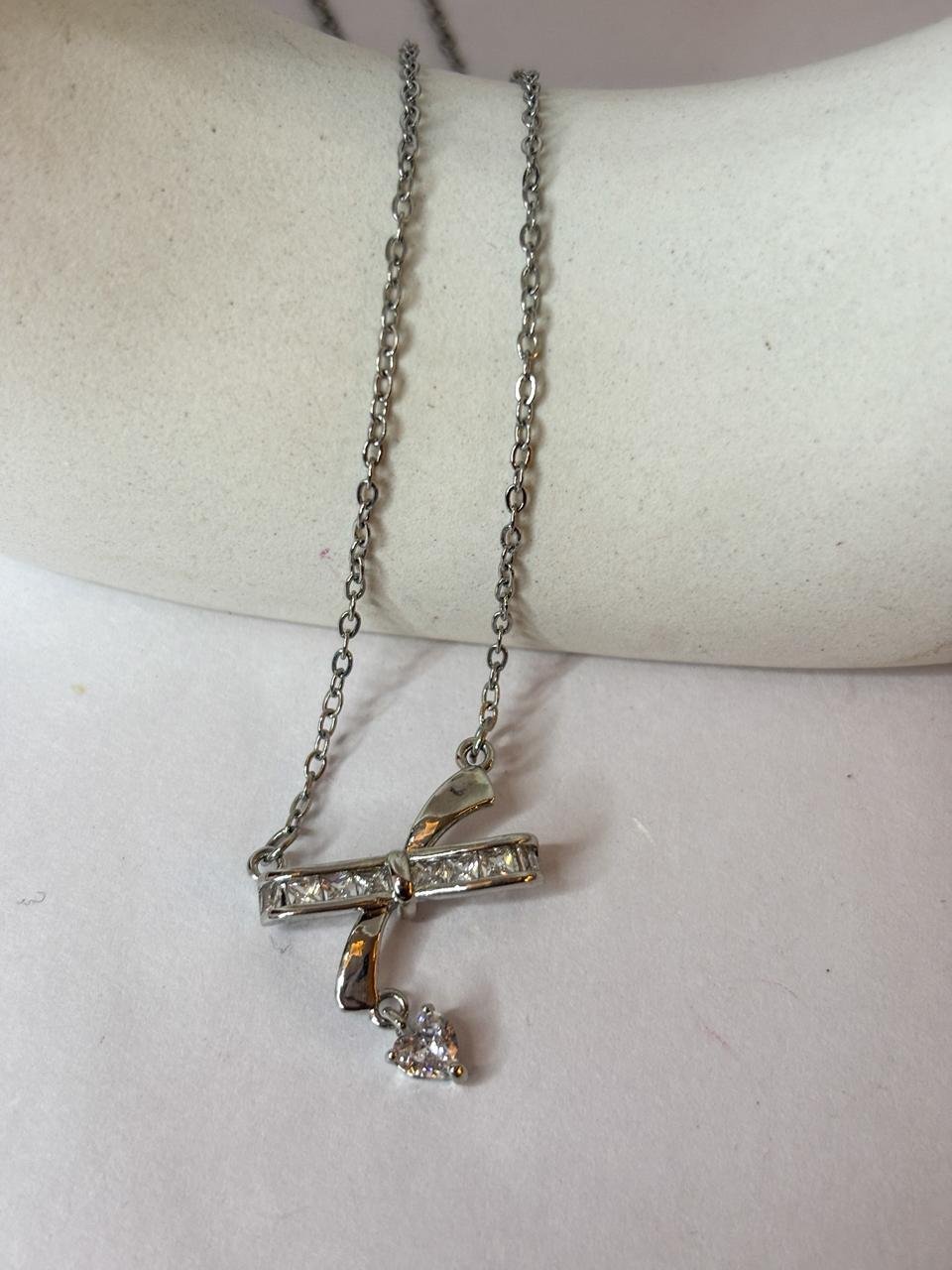 Bow Necklace features a charming bow-inspired design with a delicate, elegant appeal.