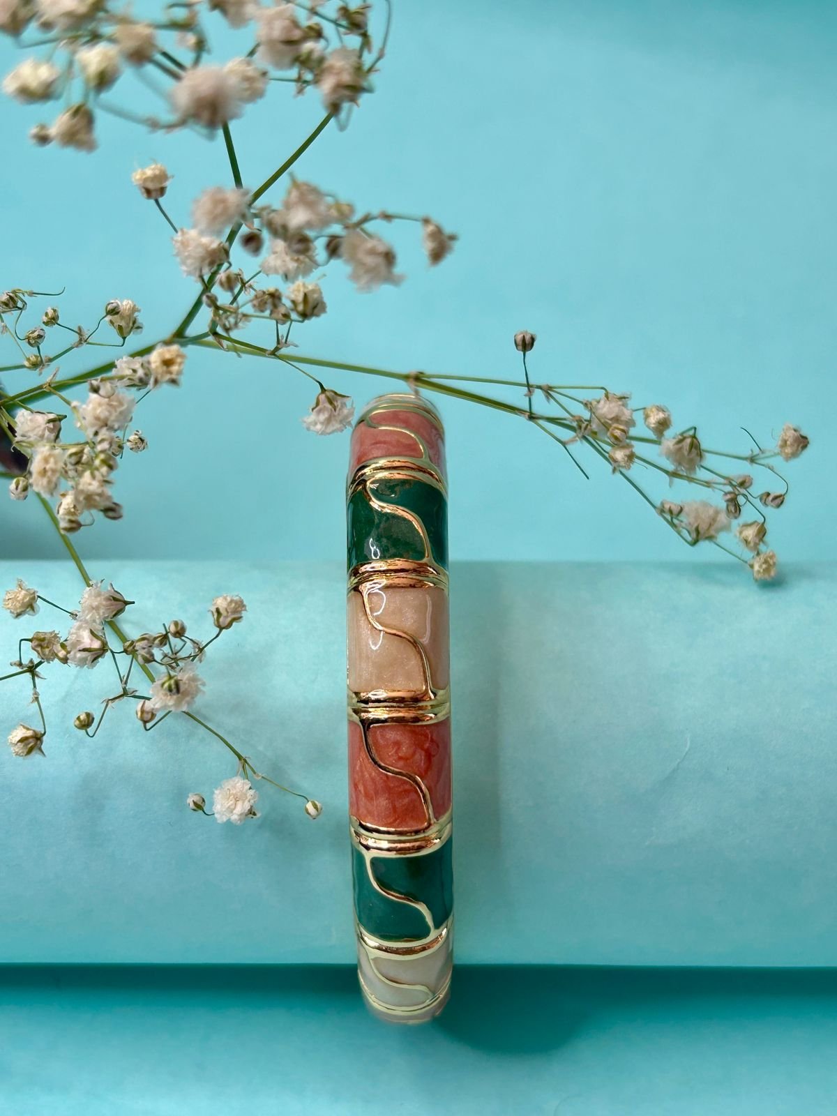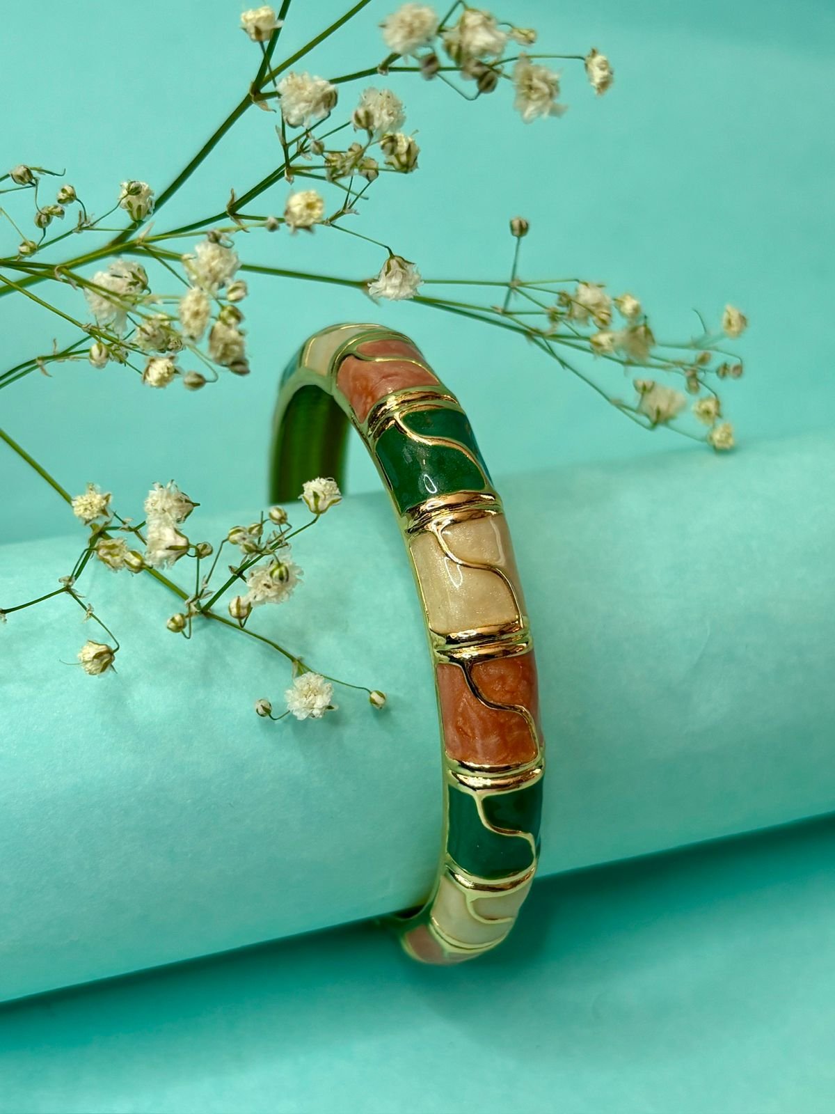 Enamel Muse Bangle features a sleek design highlighted with vibrant enamel detailing.