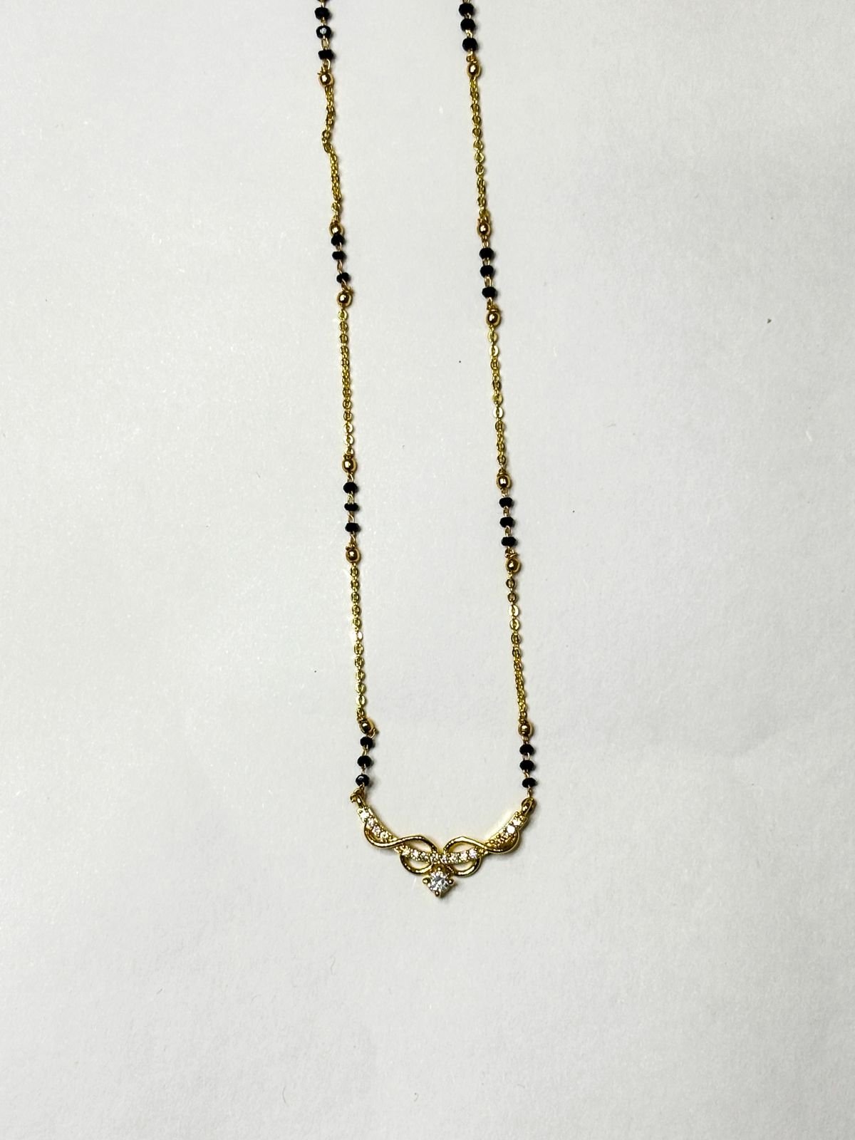 and a delicate crystal drop. Designed in a rich gold finish with traditional black bead detaCelebrate everlasting love with this Eternal Infinity Mangalsutra, featuring a beautifully crafted infinity-shaped pendant accented with sparkling stonesiling, this mangalsutra symbolizes unbreakable bonds, unity, and forever togetherness.