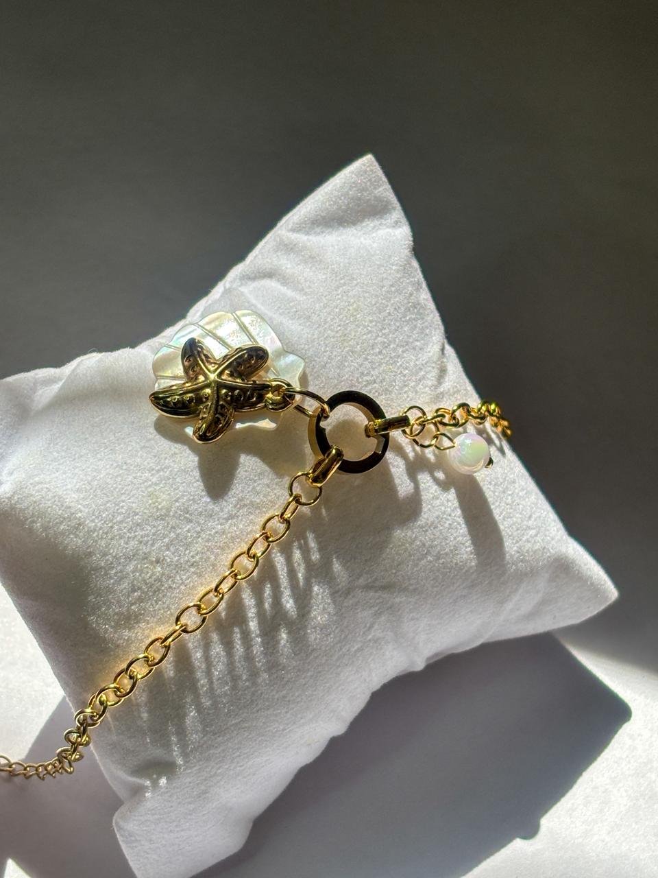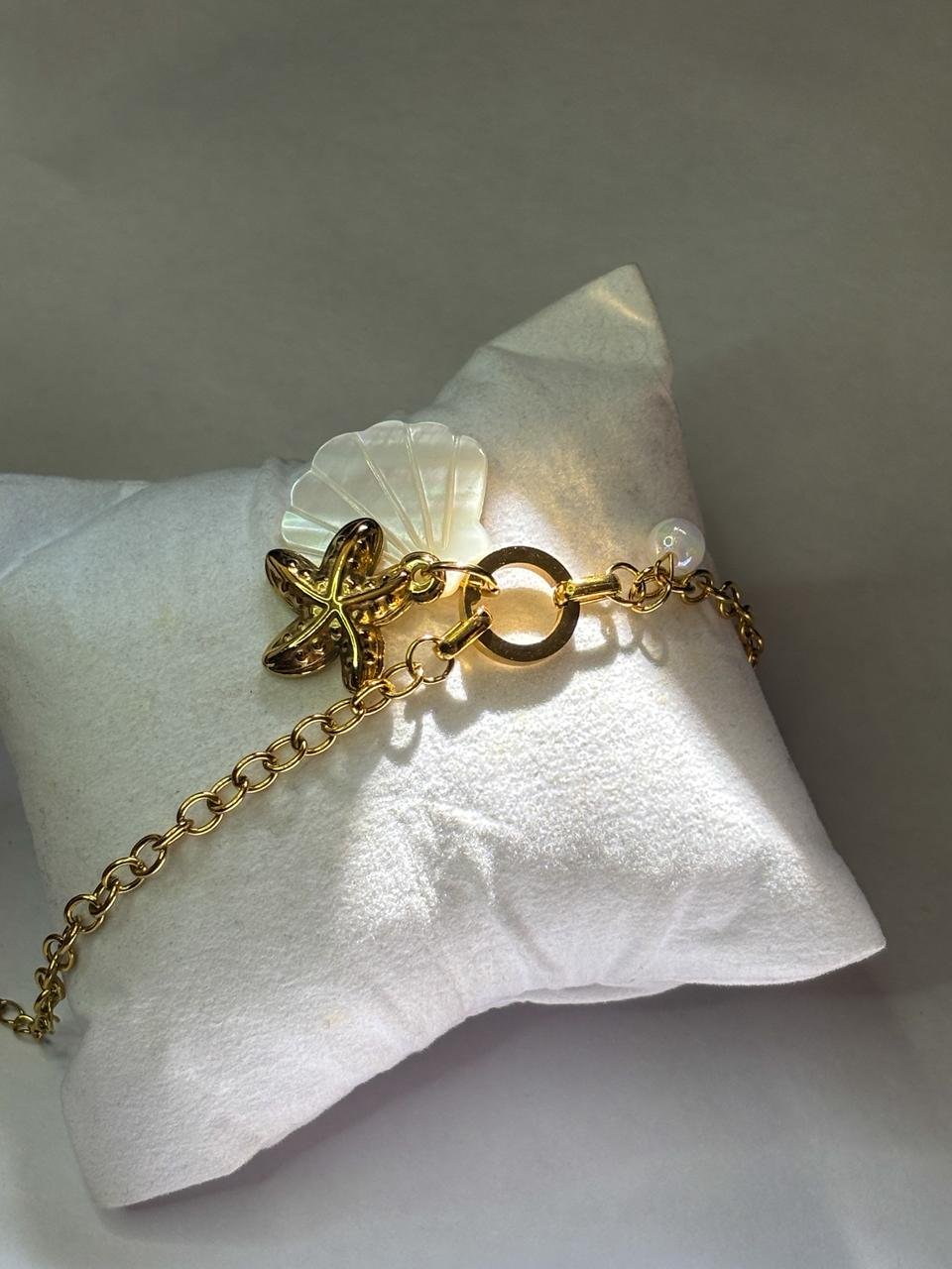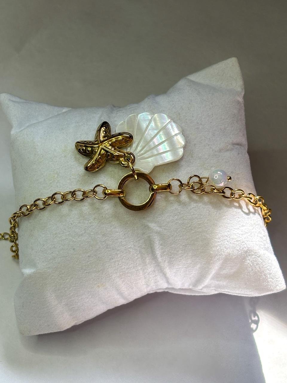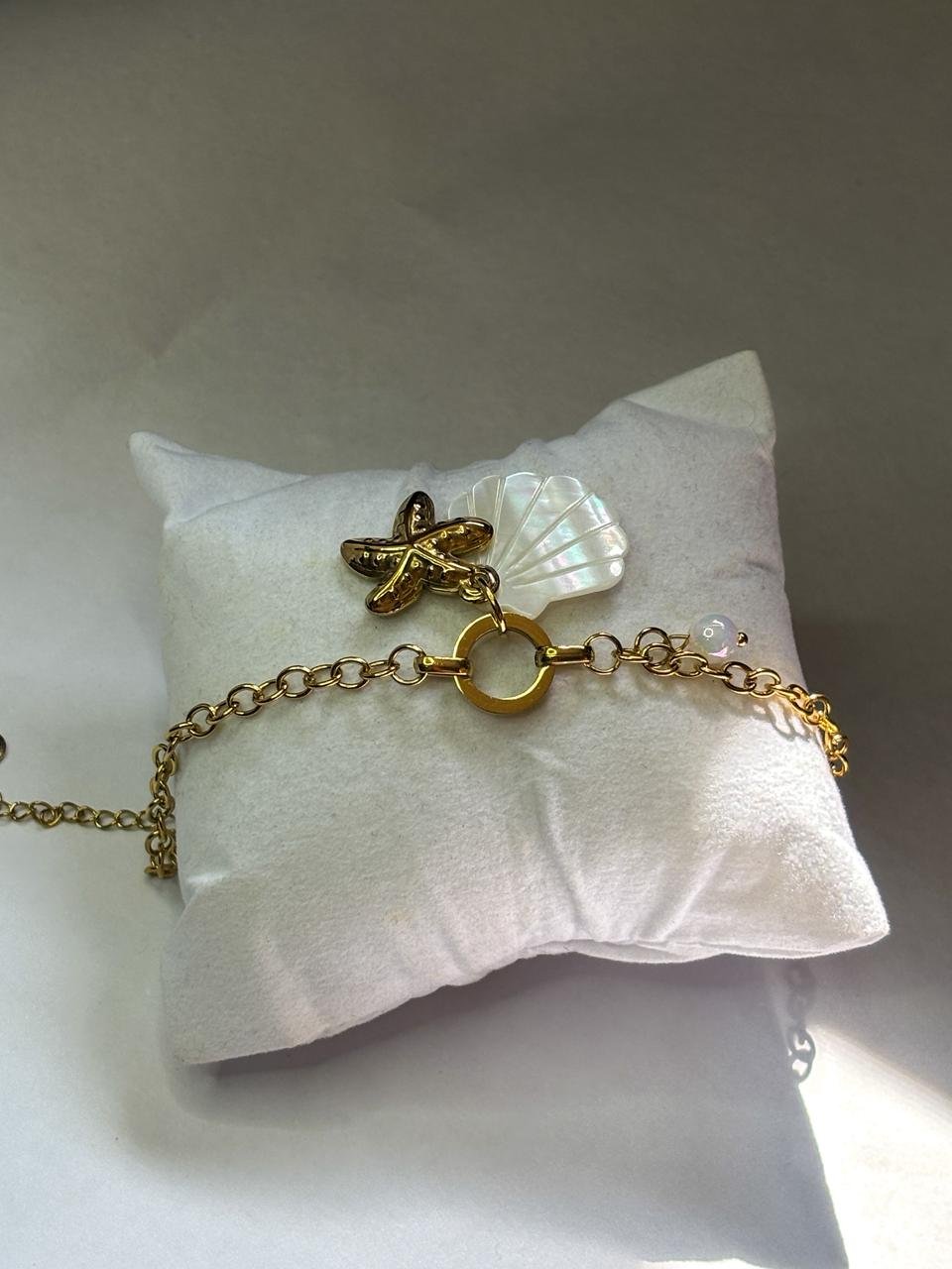 Add a touch of ocean-inspired elegance to your look with this Golden Starfish & Shell Charm Bracelet. Featuring a delicate gold-toned chain, a textured starfish charm, and a shimmering shell accent, this bracelet brings coastal vibes with a modern, minimal design. Perfect for everyday wear or beach-inspired outfits, it offers a lightweight and comfortable fit with an adjustable clasp. Style it solo for a subtle statement or layer it with other bracelets for a trendy stacked look. Ideal as a thoughtful gift for birthdays, vacations, or special occasions.
