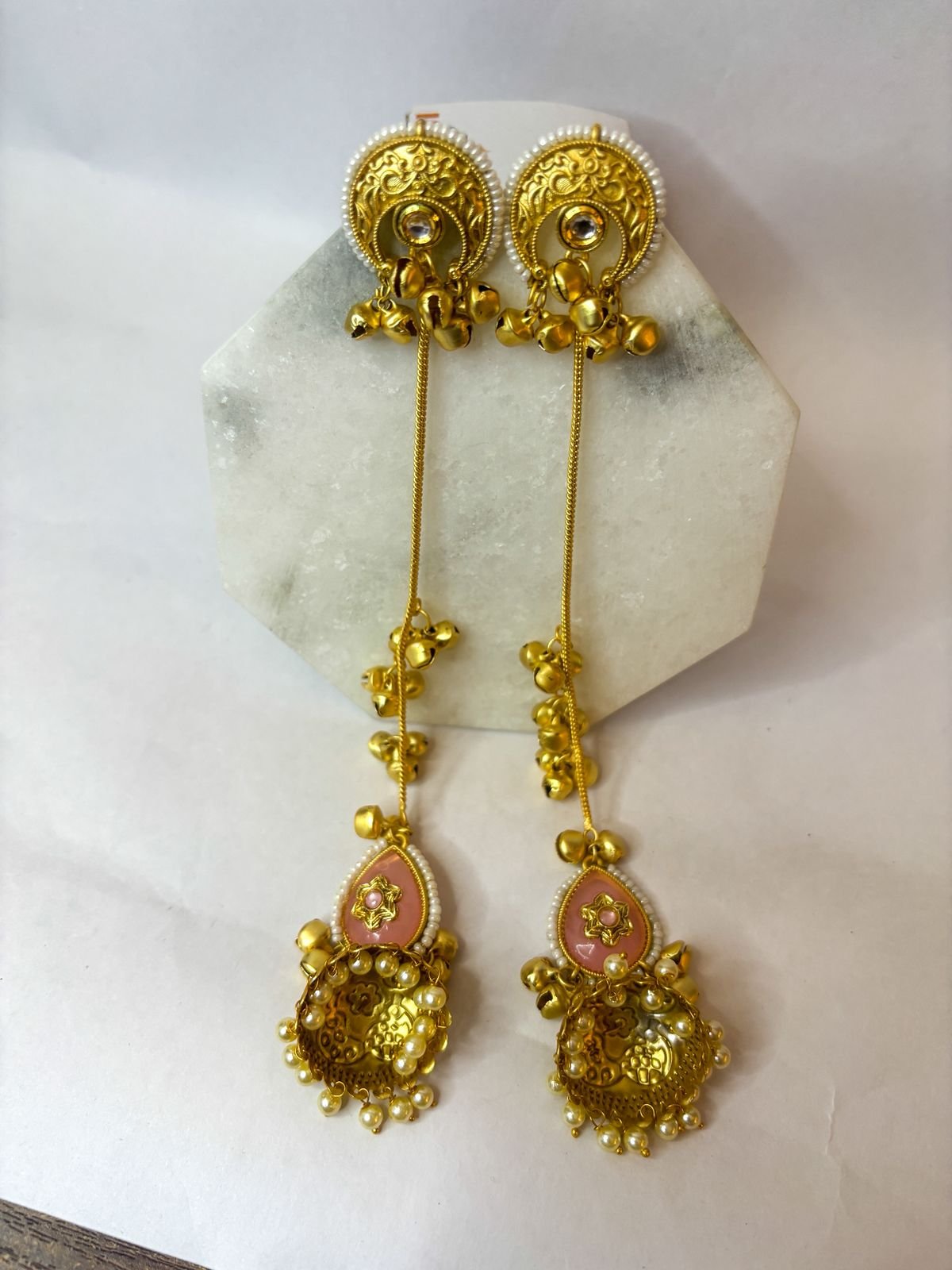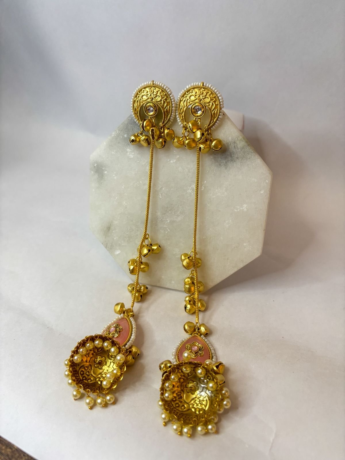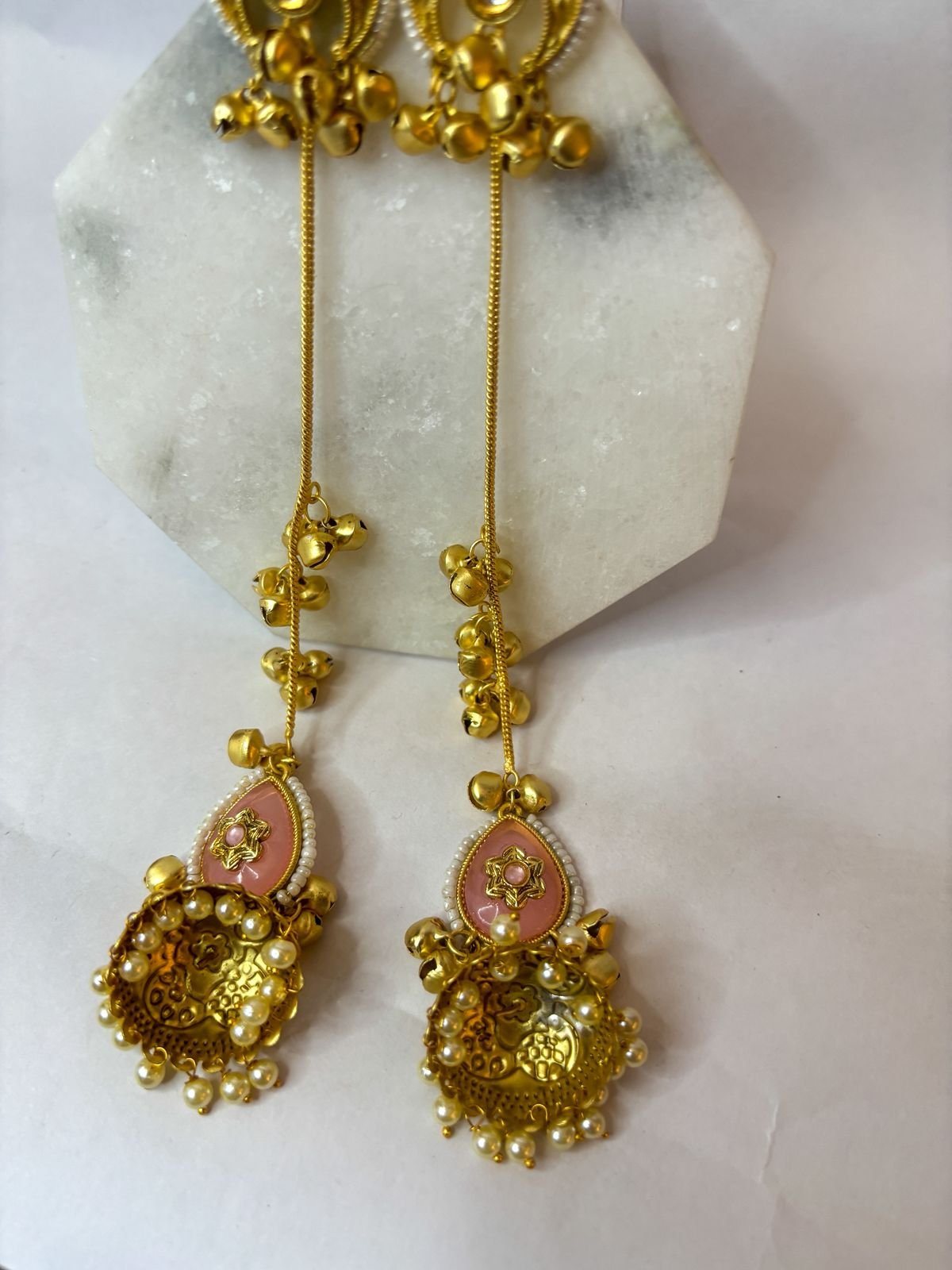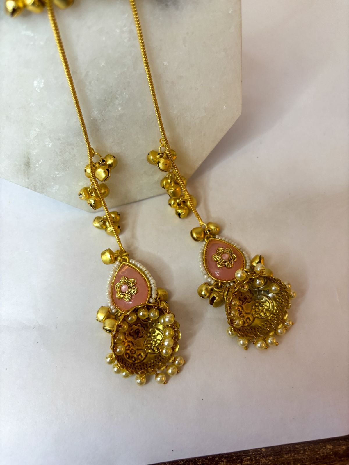The long chain tassel with ghungroo accents adds graceful movement and makes them a stunning statement piece for weddings, festive occasions, and ethnic outfits.