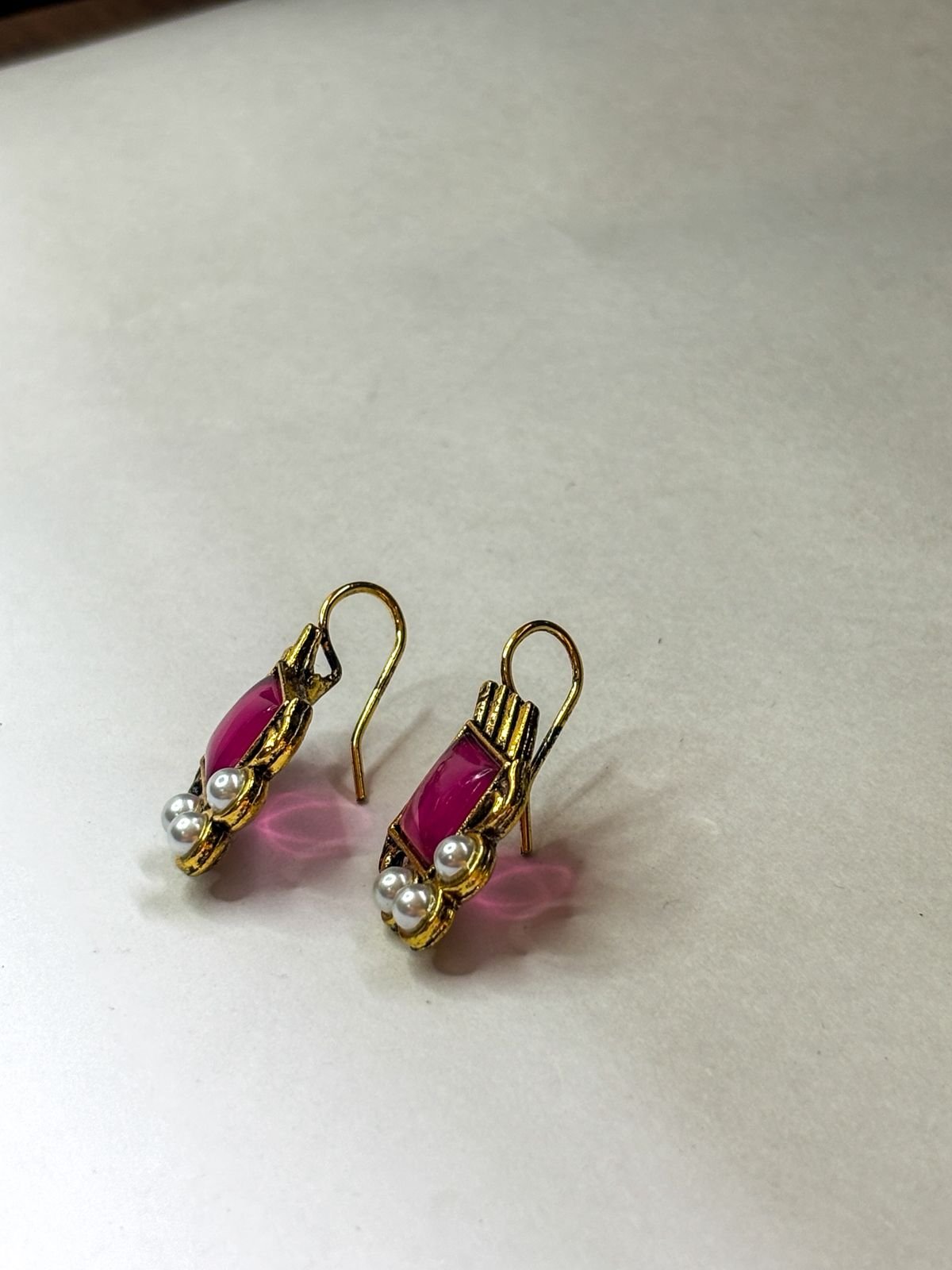 Add a royal pop of color to your traditional look with these stunning Purple Pearl Square Bugadi Earrings. Designed with a rich purple square stone centerpiece, framed in an elegant gold-tone finish and enhanced with delicate pearl accents, these bugadi earrings beautifully blend heritage charm with modern elegance. The unique side-ear (Bugadi) style offers a graceful and distinctive appeal, making them perfect for weddings, festive celebrations, cultural events, and ethnic styling. Lightweight and comfortable, they ensure long-lasting wear while elevating your overall look with sophistication and charm.